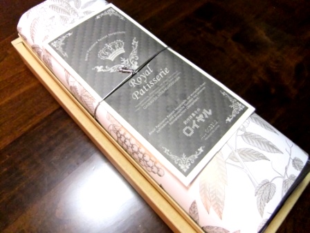 夫の持つ紙袋には、お土産のブランデーケーキとカステラ・・・・