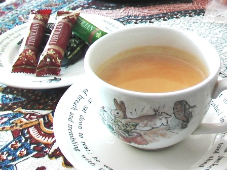 そのミルクバニラティーを撮影するとき、ピーターラビットのカップを使ったのですが、あまりに古くなっていてびっくりでした。
