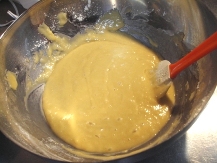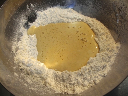 ふるったAの真ん中にくぼみを作り、Bを落としてざっくり混ぜる。