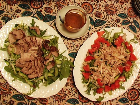 クレソンとか香菜、白髪ねぎなど合いますよ。