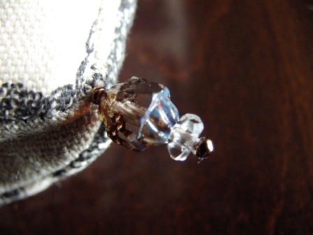 ティーマットの端っこにはビーズをつけて、おそろいのコースターも作って賑やかなセットにしました。