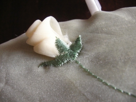 フランスのドレスの生地を使ったので、社交界にデビューする、初々しい少女の纏うドレスのイメージです。
