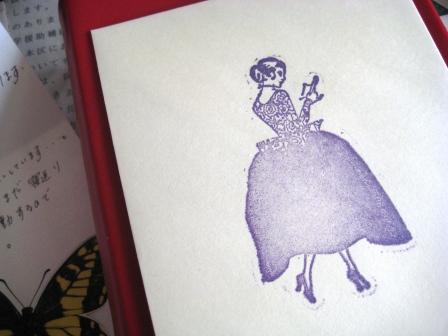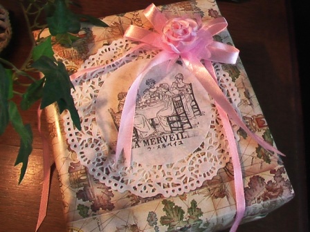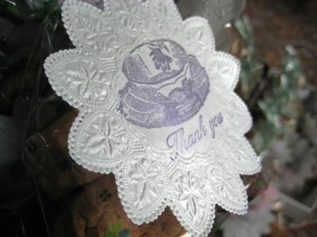 レースペーパーにスタンプを押した物をぺたんと貼り付けるだけの簡単なものです。