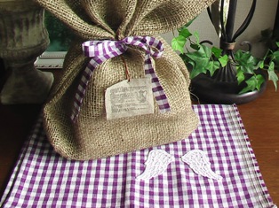 木箱のセットは麻袋にお入れして、端切れのリボンで結びます。