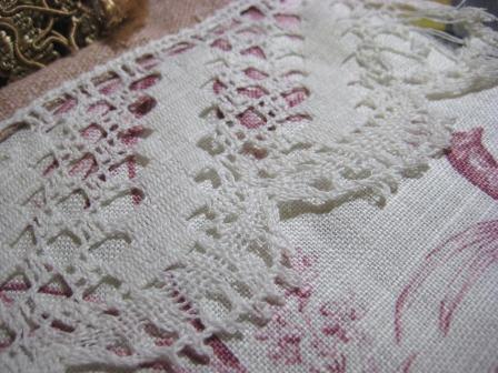 ポットマットにアンティークレースをつけていたのですが、古いものなのでどうしてもところどころレースがほどけて、糸が切れているところがあります。