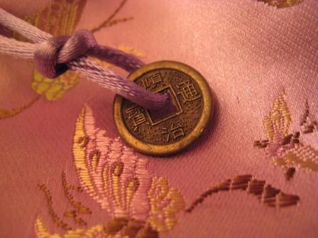 そしてこの巾着のこだわりはひもについた小銭・・・