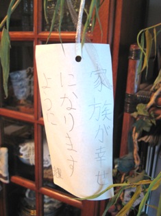 子どもたちにお願い事を書かせている間に、徳島にいる夫がメールで願い事を送ってきました。