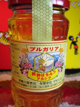 450g入りのアカシアですが、赤い蓋と、レトロっぽい日本語のロゴが何となく憎めない瓶です。