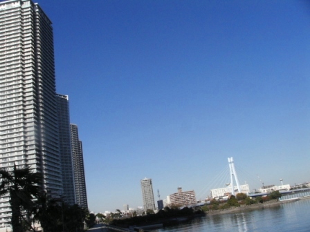 夕方近くになると、東京湾のお仕事から帰ってくる船が見えます。