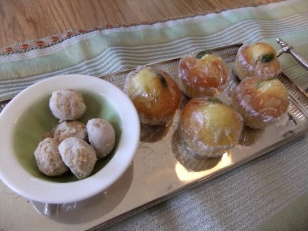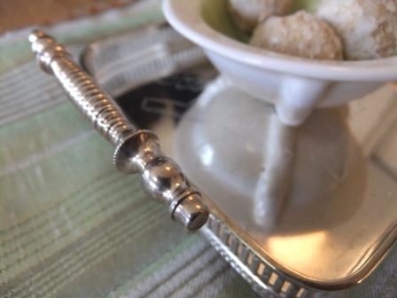 お友達が作ってくれたという、美味しい焼き菓子を、フランスののみの市で購入された銀器に盛って。