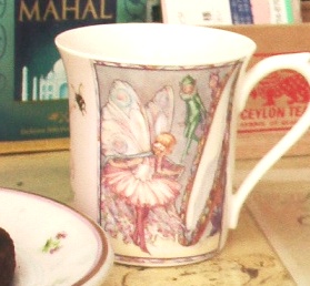 使っているのは、娘に頂いたイギリスの女流画家が描いた、フェアリーとお花の絵の付いた、素敵なカップ。