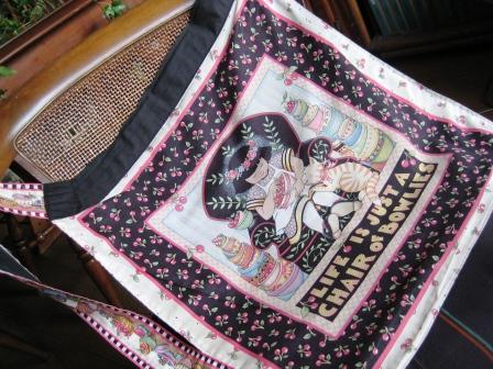 すり切れていたエプロンはパネル生地をカットして作ったものです。