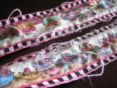 ハンドメイドといっても、生地を適当にカットして、綾織りのテープをつけただけ、という簡単なものばかり。